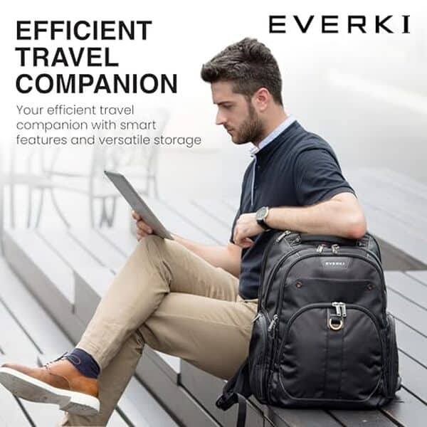 • Everki Atlas sac à dos ordinateur 29,5 L – sac de voyage pour femme et homme, sac travail/voyage, compatible ordinateurs 15,6", sac à dos femme/homme – Noir (EKP121S15)